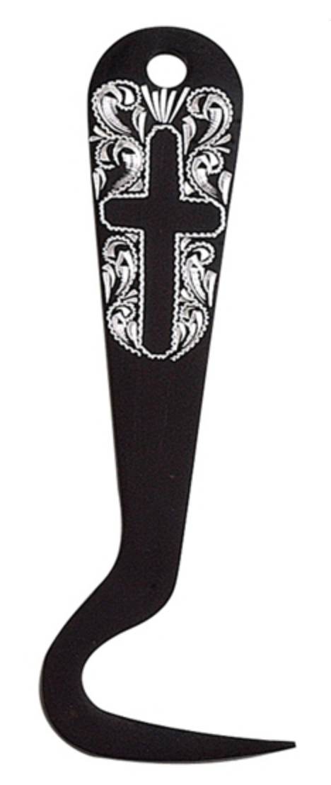 Aluminum Hoof Pick, Hand Engraved, Cross Pattern