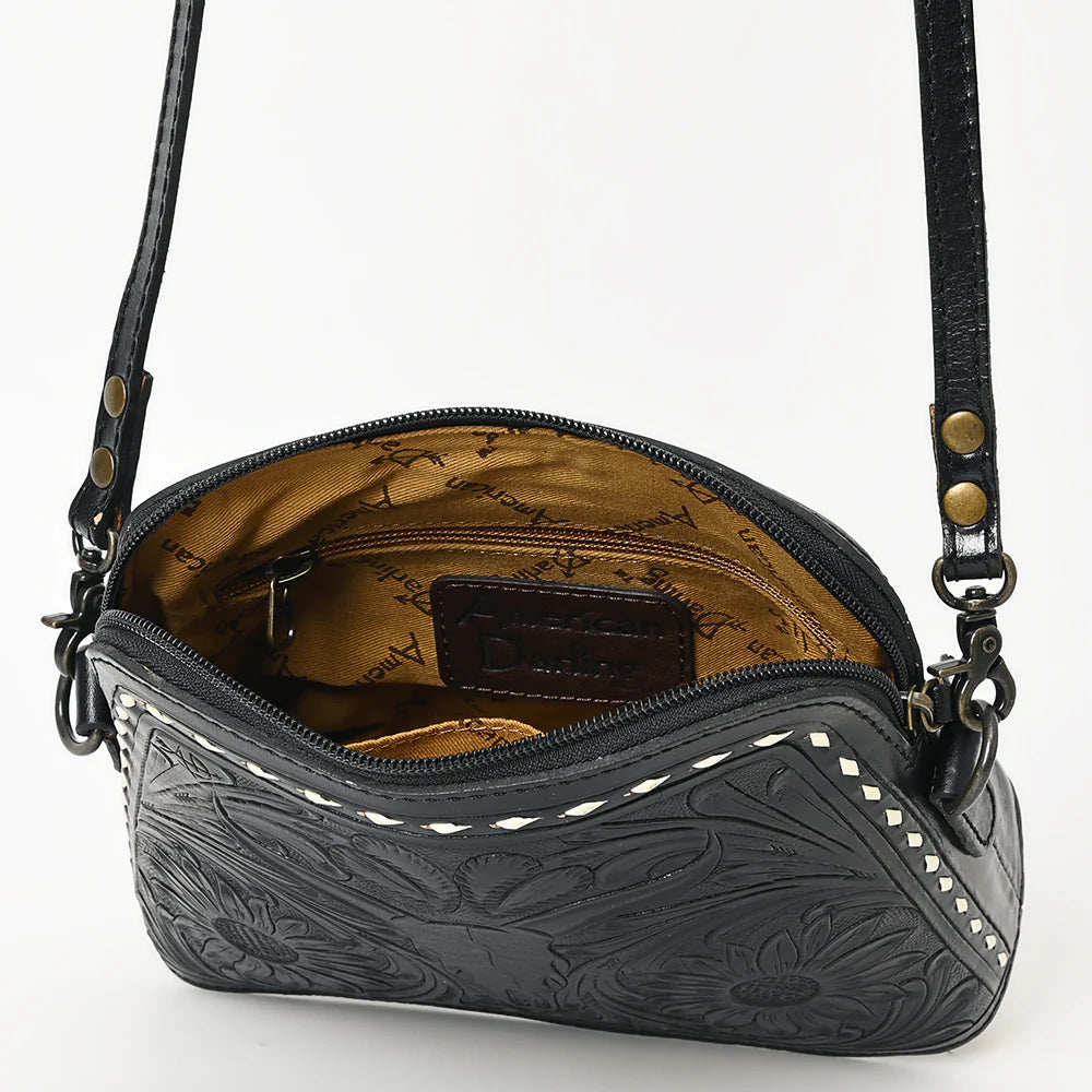 American Darling Black Western Tooled Leather Crossbody with Longhorn Design ADBG769A