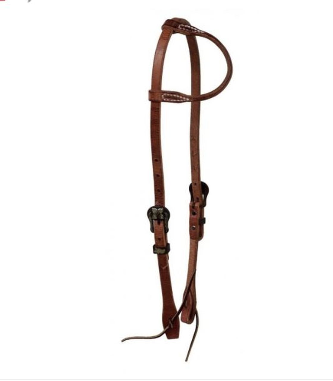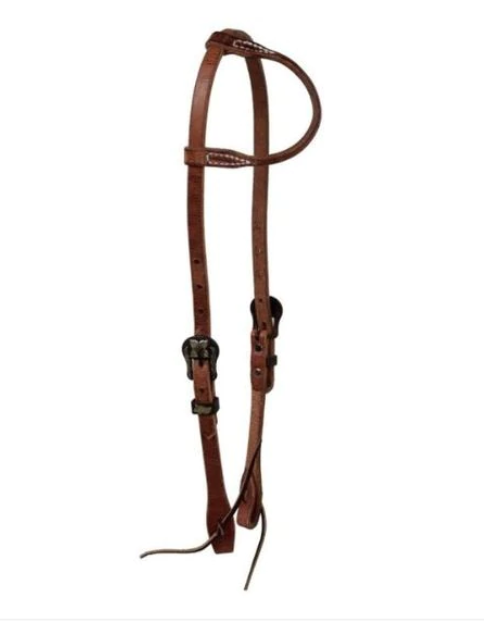 Berlin Custom Leather Brown Rolled Ear Headstall with Iron Buckle H1552