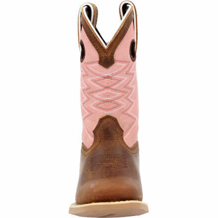 - Full-grain leather foot, collar and pull straps with faux shaft