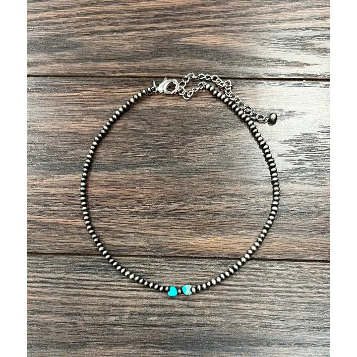 Handmade Tiny Navajo Bead and Small Hear Gemstone Necklace.