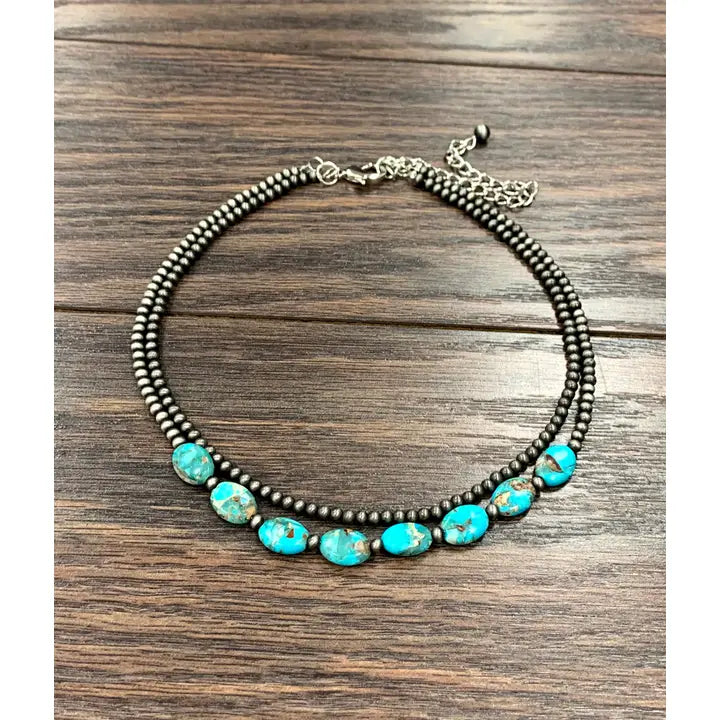 Handmade 2-Strand Small Oval Gemstone and Navajo Bead Necklace.