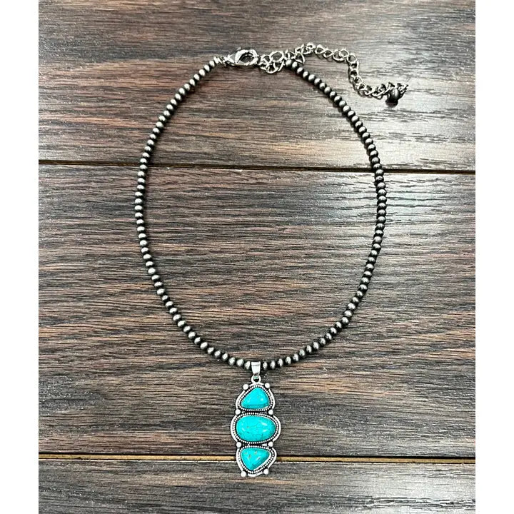 Tiny Navajo Bead Necklace with Turquoise Pendant.