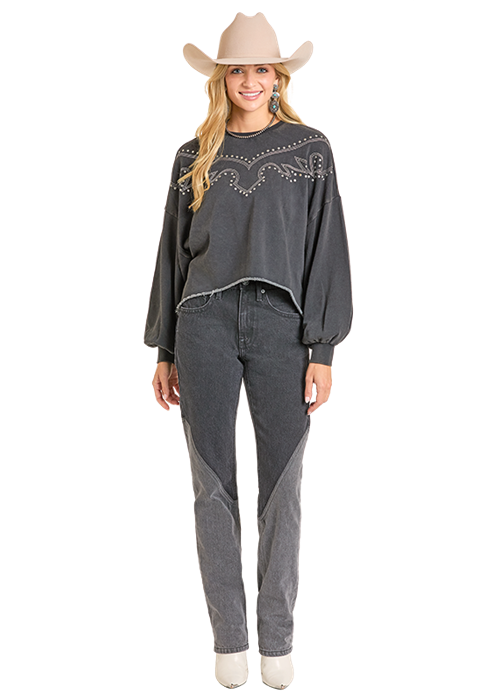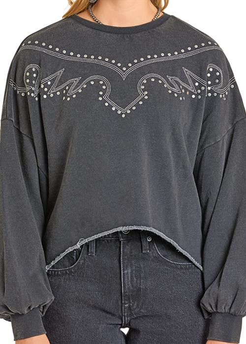 Rock & Roll Cowgirl Black Embroidered Sweatshirt BW91T06995