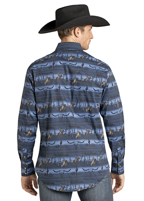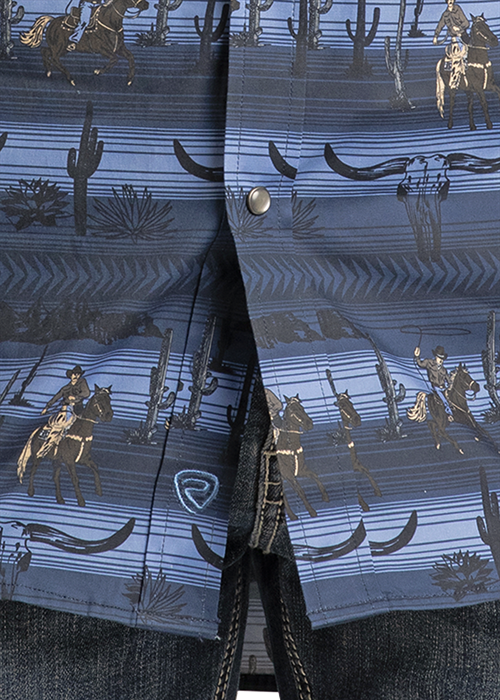 Rock & Roll Men's Blue Printed Shirt BMN2S07135
