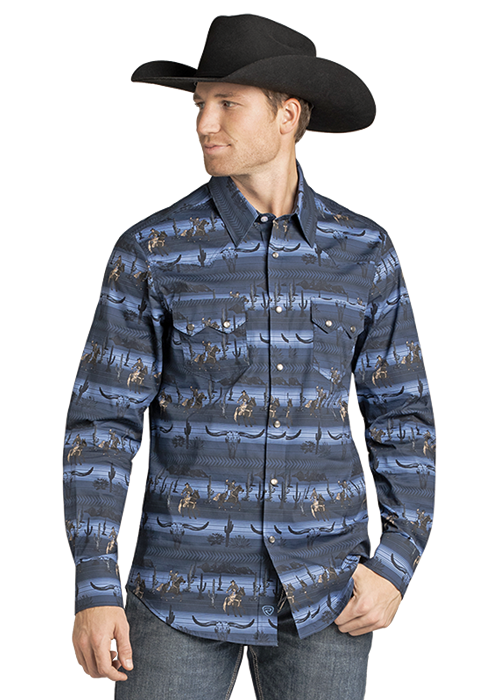 - Blue Western Striped Print