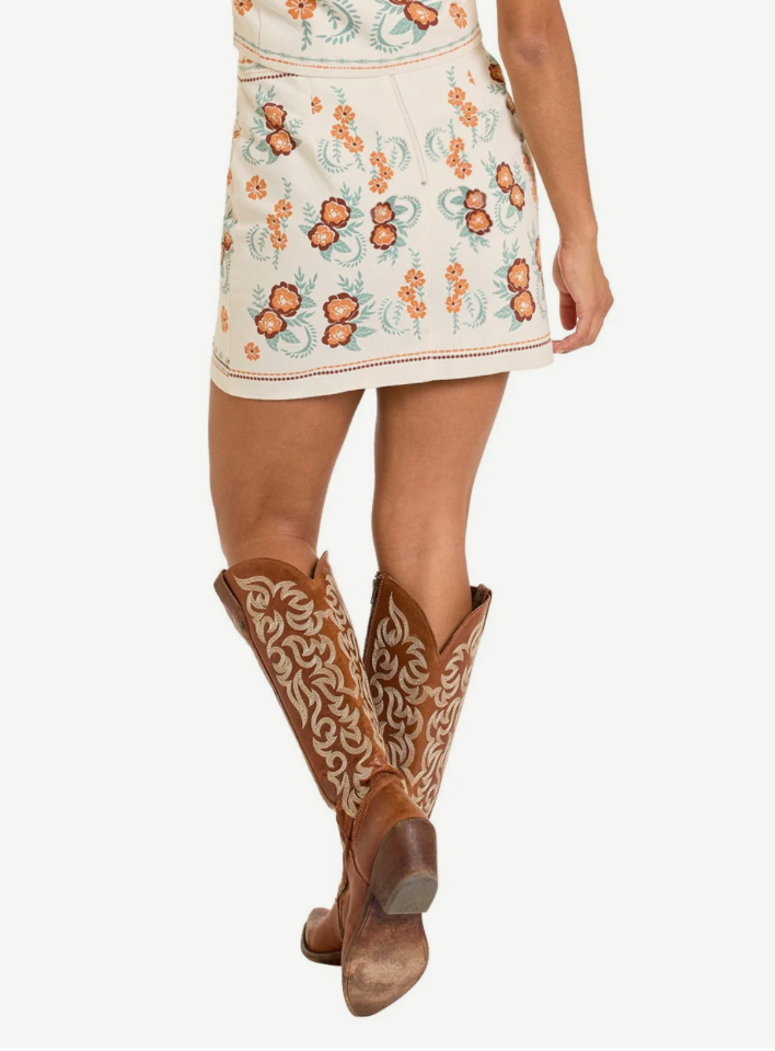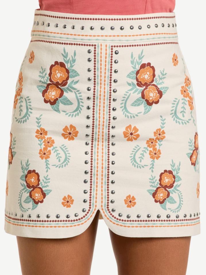 Rock & Roll Cowgirl Floral Studded Skirt BW69B06318