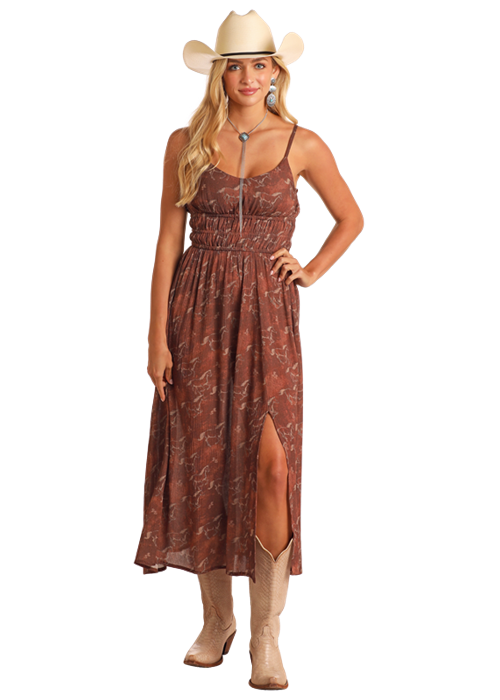 Rock & Roll Women's Horse Print Midi Dress BWD0R05884