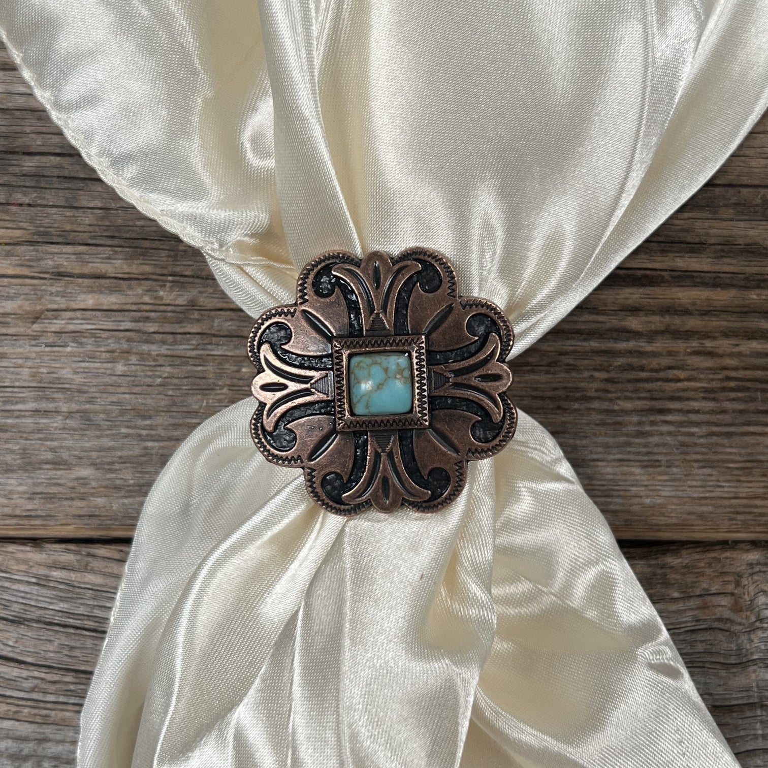 Copper Fleur-de-lis with turquoise stone western concho slide (W141L).
