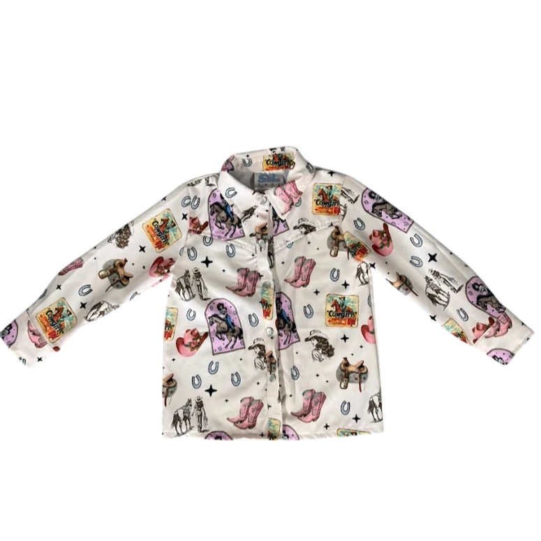 Shea Baby Girl's Pink Vintage Cowgirl Snap Front Shirt GWEST27