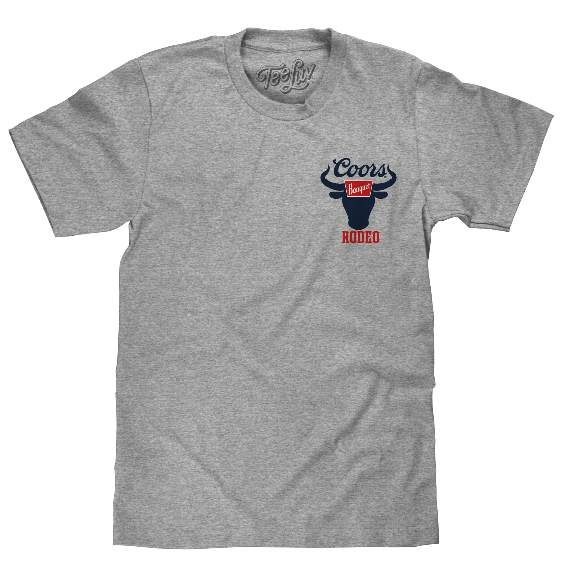 Founded in 1873 at base of the Rocky Mountain's Front Range - the Coors Golden Brewery embodies the rugged, adventurous spirit of the American West. It's this upbringing that made the Banquet brew the perfect match for Rodeo - the rough and tough sport that tests the grit of brave cowboys and cowgirls! To honor this piece of the Wild West, the Tee Luv team crafted this comfortable double-sided beer brand t-shirt featuring the Coors Banquet Rodeo bull logo. To complete the vintage look and feel of this Coors shirt - we've printed the design on the left chest and back of a soft, Athletic Heather tee.