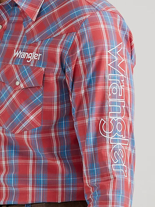 Wrangler Men's Red Plaid Logo Shirt 112344433