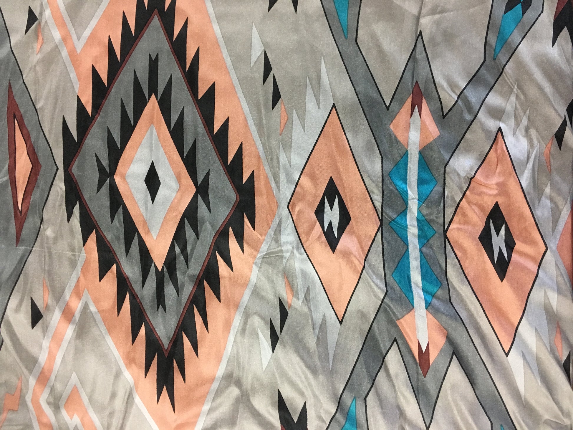 Wyoming Traders Southwest design silk scarves are made from 100% silk with our 8mm light weight fabric. This scarf is available in 34.5”.